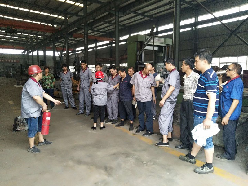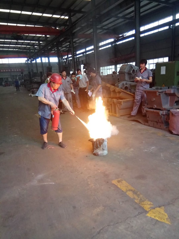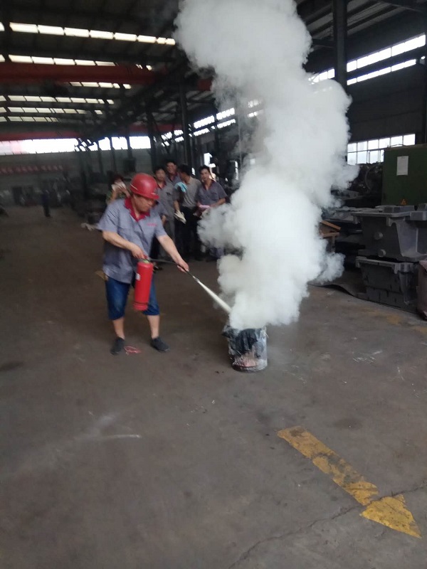 4、安全負(fù)責(zé)人和車間領(lǐng)導(dǎo)一同為大家展示發(fā)生火災(zāi)時(shí)滅火器演示